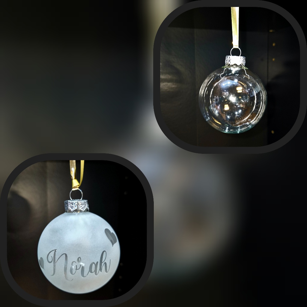 De eigen naam wordt in een sierlijke letter op de kerstbal gezet. De grootte van de letters is afhankelijk van de lengte van de naam.