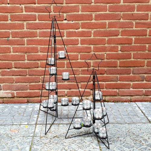 De boom is verkrijgbaar in 2 maten. De kleine maat is 55 cm hoog en heeft 9 sfeerlichtjes in de boom. De grote maat is 84 cm hoog en heeft 12 sfeerlichtjes.