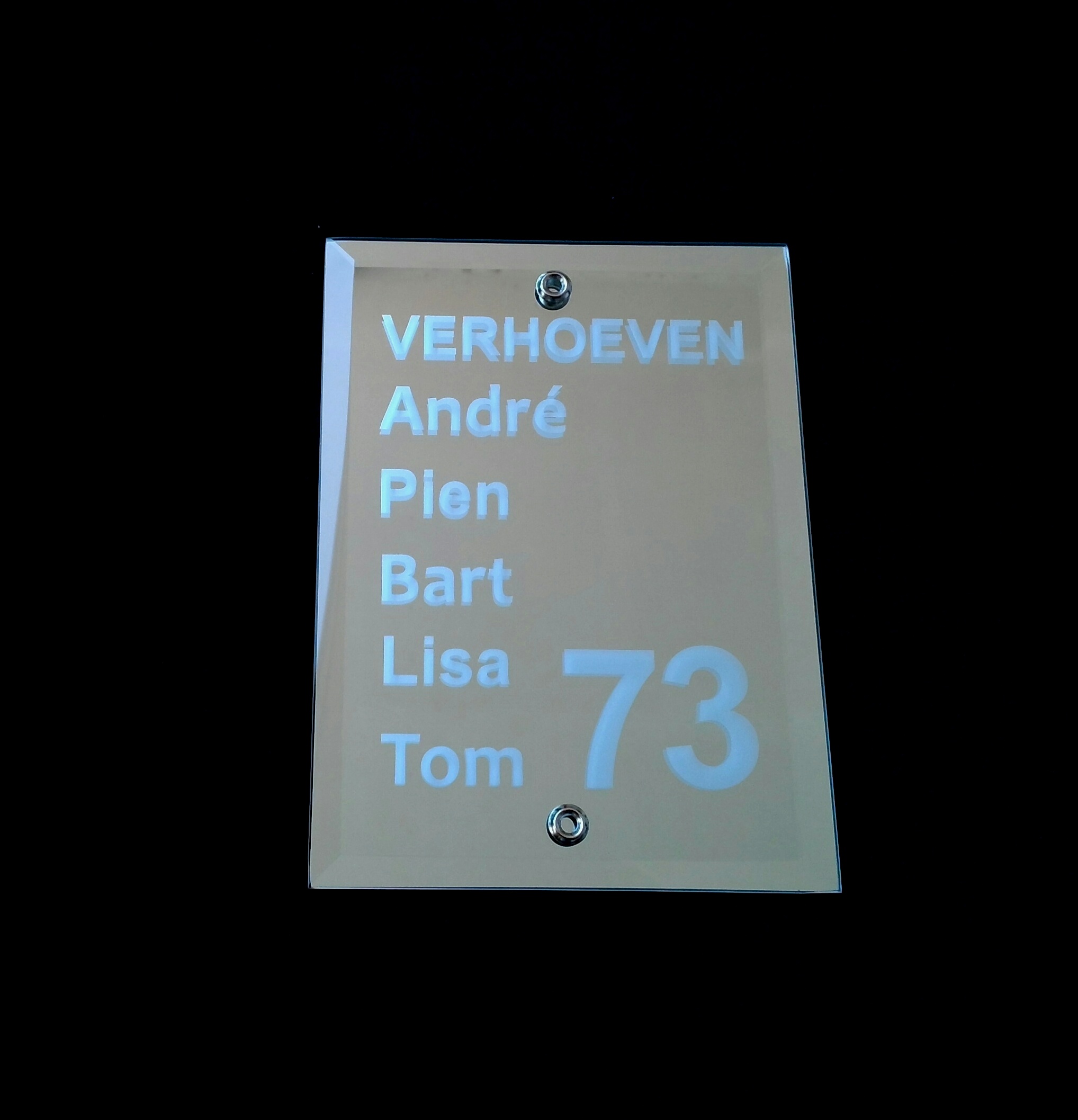 Een persoonlijk naambord voor bij uw voordeur! Heeft u liever iets specifieks op uw naambord zoals bijvoorbeeld een bedrijfslogo of een familiewapen?Upload dit dan HIER.
