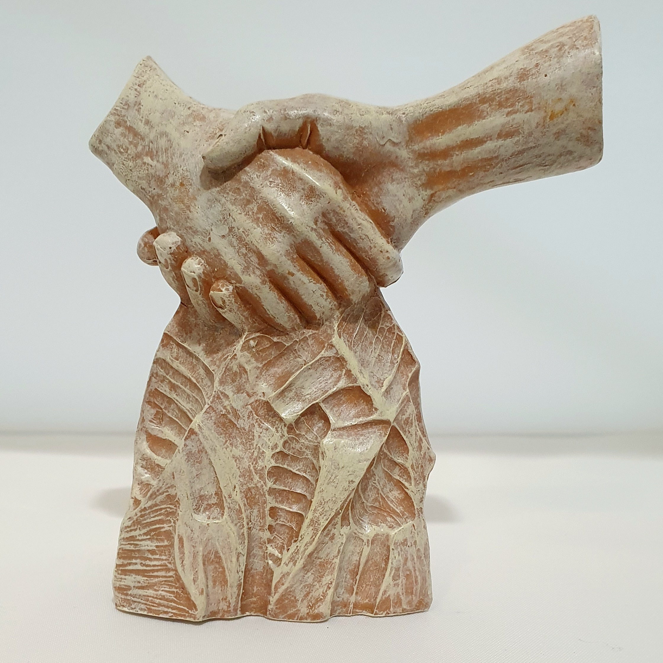 Een beeld gemaakt van polystone met een  handdruk, oftewel Bedankt!